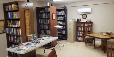 It is located in Rooms #2 and #3 at our Ministry Center and is open and accessible to students, teachers, pastors, and others in our area who need a quiet place to study with open internet access at their convenience. Please give us a call at our church office for more information and access codes